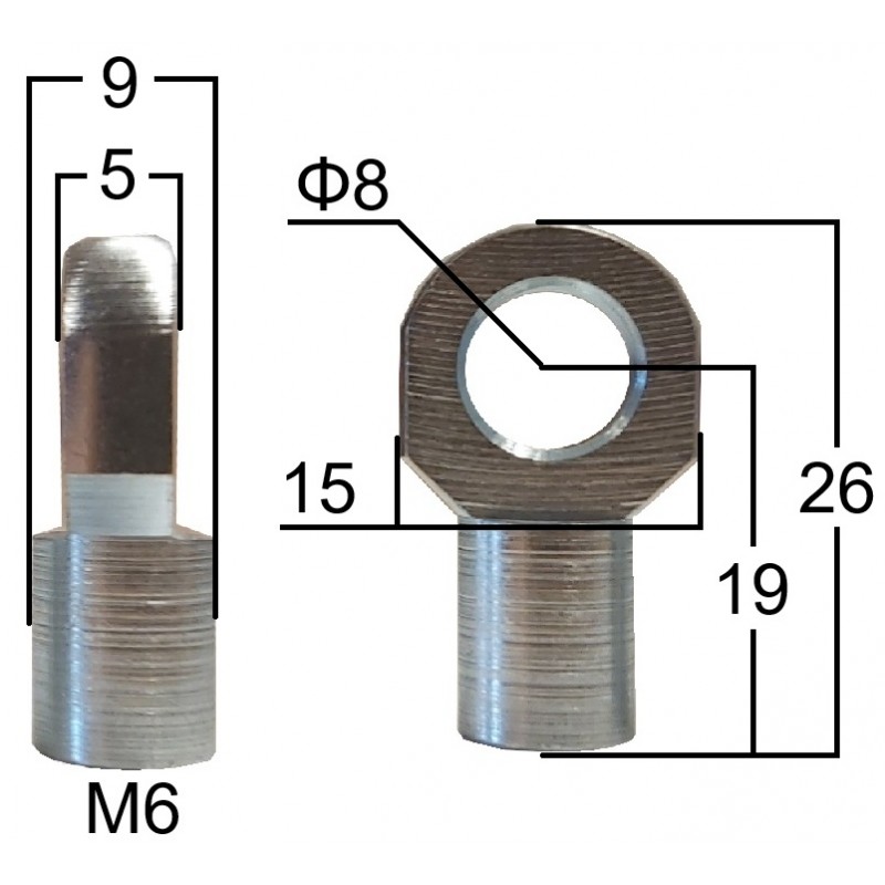 Przegub oczkowy otwór o średnicy 8mm gwint M6 długość 19mm grubość 5mm (EY306)